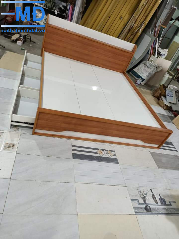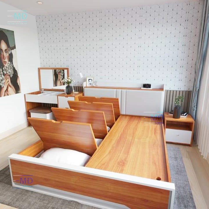 Ngoài ra với mẫu giường nhựa thông minh bạn sẽ tận dụng tối đa không gian để đồ dưới giường. Giường gồm có 3 ngăn kéo và 4 học để đồ sẽ vô cùng tiện lợi cho việc sắp quần áo, chăn đệm.