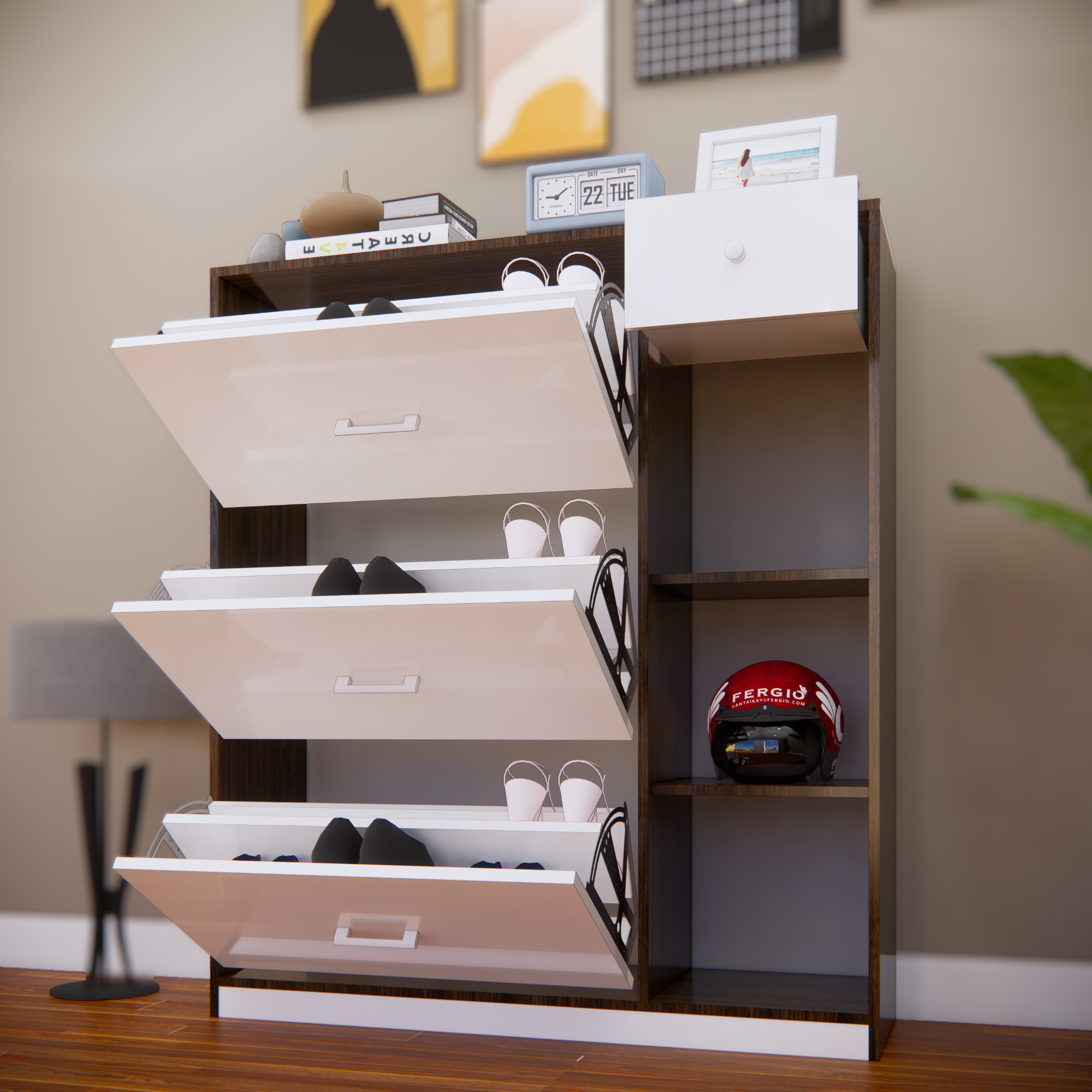 - 1 buồng gồm 3 cánh lật, mỗi cánh lật gồm 2 ngăn để giày.