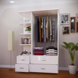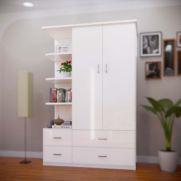 Với không gian gồm 1 buồng treo, 4 ngăn kéo và 1 kệ trang trí để đồ bạn sẽ yên tâm với không gian đầy đủ để sắp xếp quần áo của mình.