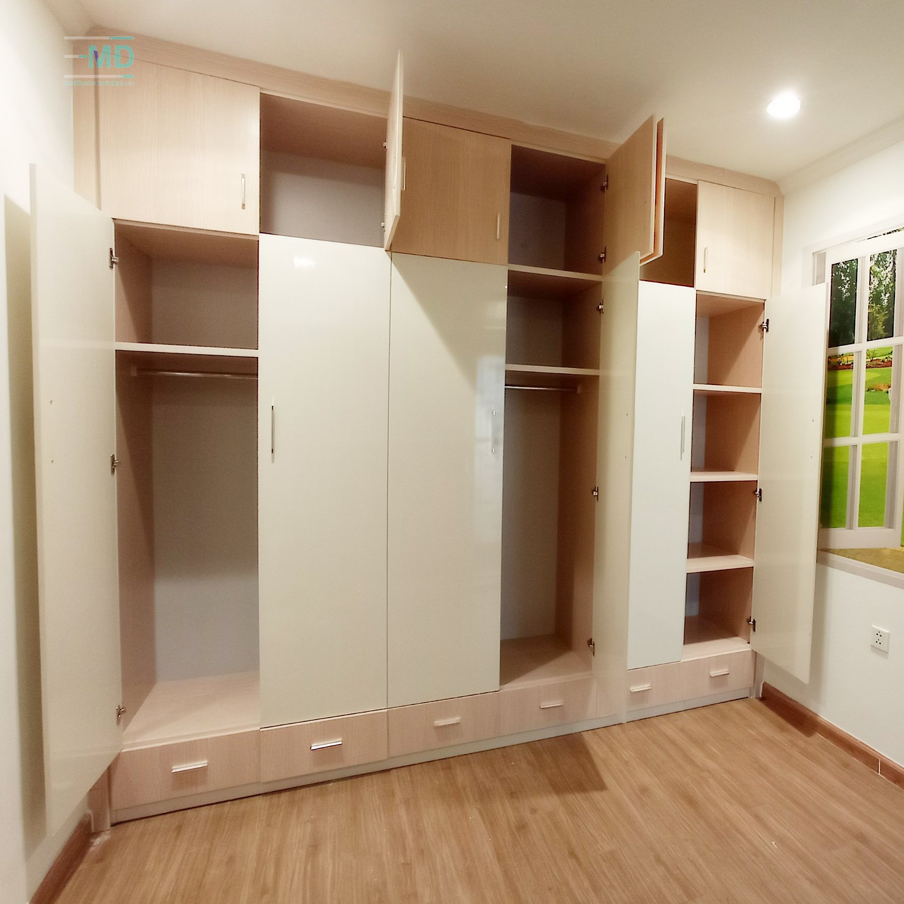 - 2 buồng to gồm 1 đợt để đồ và 1 suốt treo quần áo.
