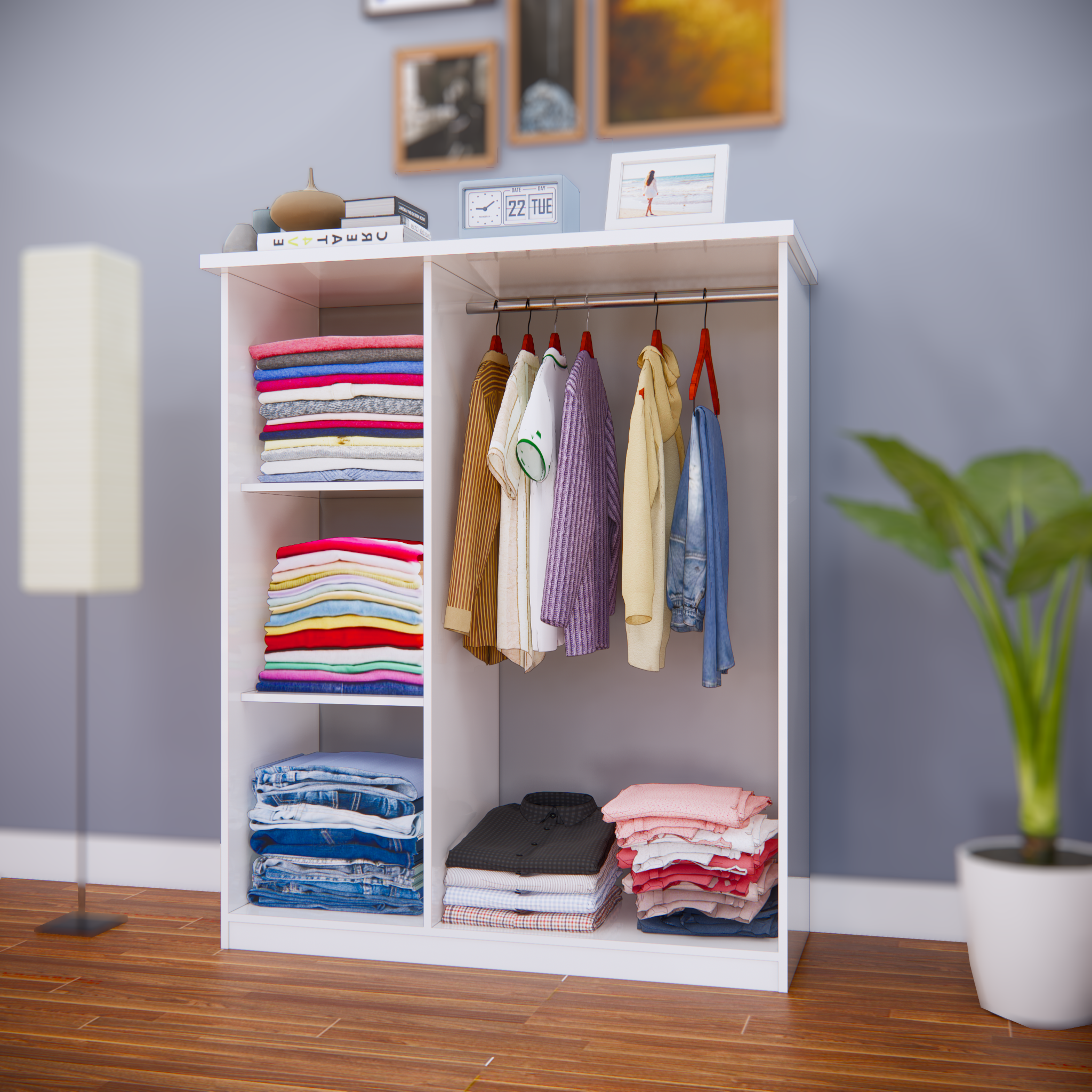 Với không gian gồm 1 buồng treo và khoang để gấp đồ bạn sẽ yên tâm với không gian đầy đủ để sắp xếp quần áo cho bé nhà mình.